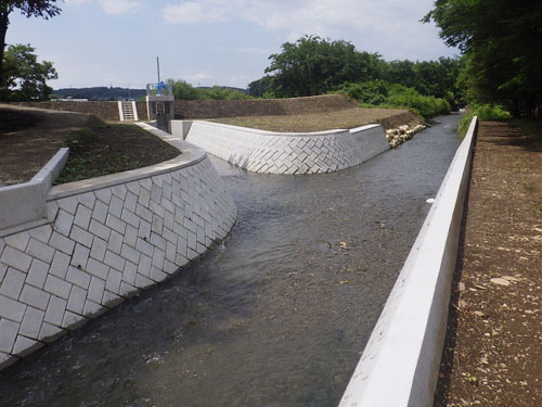 大森調節池から不老川へ水を排水するための新たな施設の整備、排水施設と接続する不老川の護岸の整備を行いました。