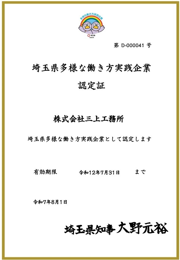 2025年8月1日、弊社は「多様な働き方実践企業」に認定されました。